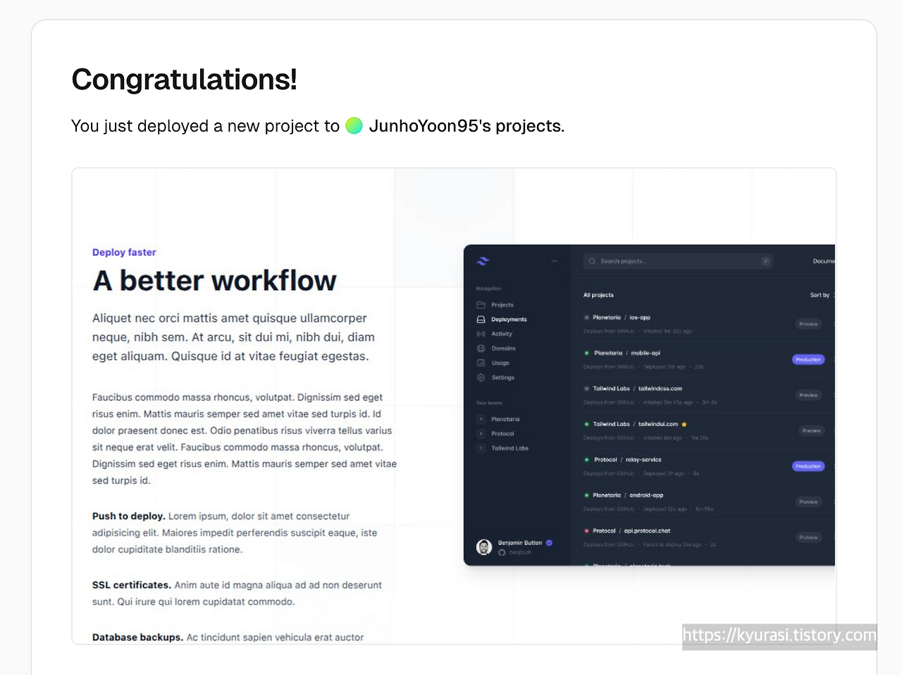 이와 같은 화면이 나온다면 Deploy가 완료 된 것입니다!